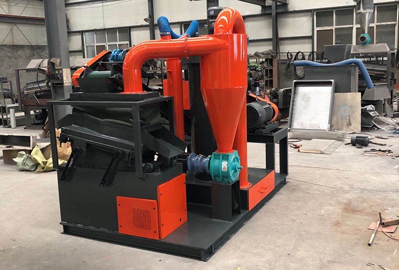 3.比重分選作為銅米、塑料分選的重要部分采用意大利氣流懸浮分選工藝,震動頻率與物料懸浮送風裝置皆可根據不同物料進行精準調節(jié)。